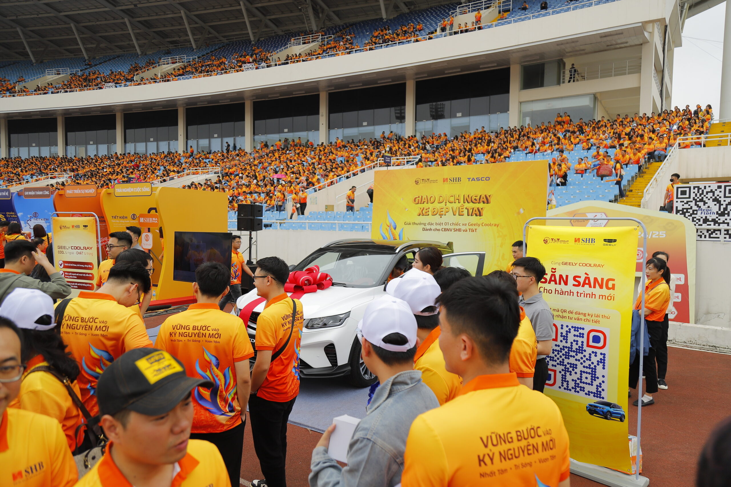 Ngày hội Văn hóa SHB & T&T Group năm nay được tổ chức với chủ đề “Vững bước vào kỷ nguyên mới”, đánh dấu một trong những sự kiện nội bộ có quy mô lớn nhất từ trước đến nay. Với sự tham gia của hơn 15.000 cán bộ nhân viên, chương trình không chỉ là dịp để kết nối và gắn kết tập thể mà còn mang đến nhiều hoạt động sôi động, bao gồm các màn trình diễn nghệ thuật hoành tráng, sự góp mặt của nhiều nghệ sĩ nổi tiếng và đặc biệt là những phần thưởng giá trị dành cho nhân viên. Trong đó, chiếc Geely Coolray phiên bản Flagship đã trở thành tâm điểm khi được công bố là giải thưởng lớn nhất của chương trình bốc thăm may mắn.