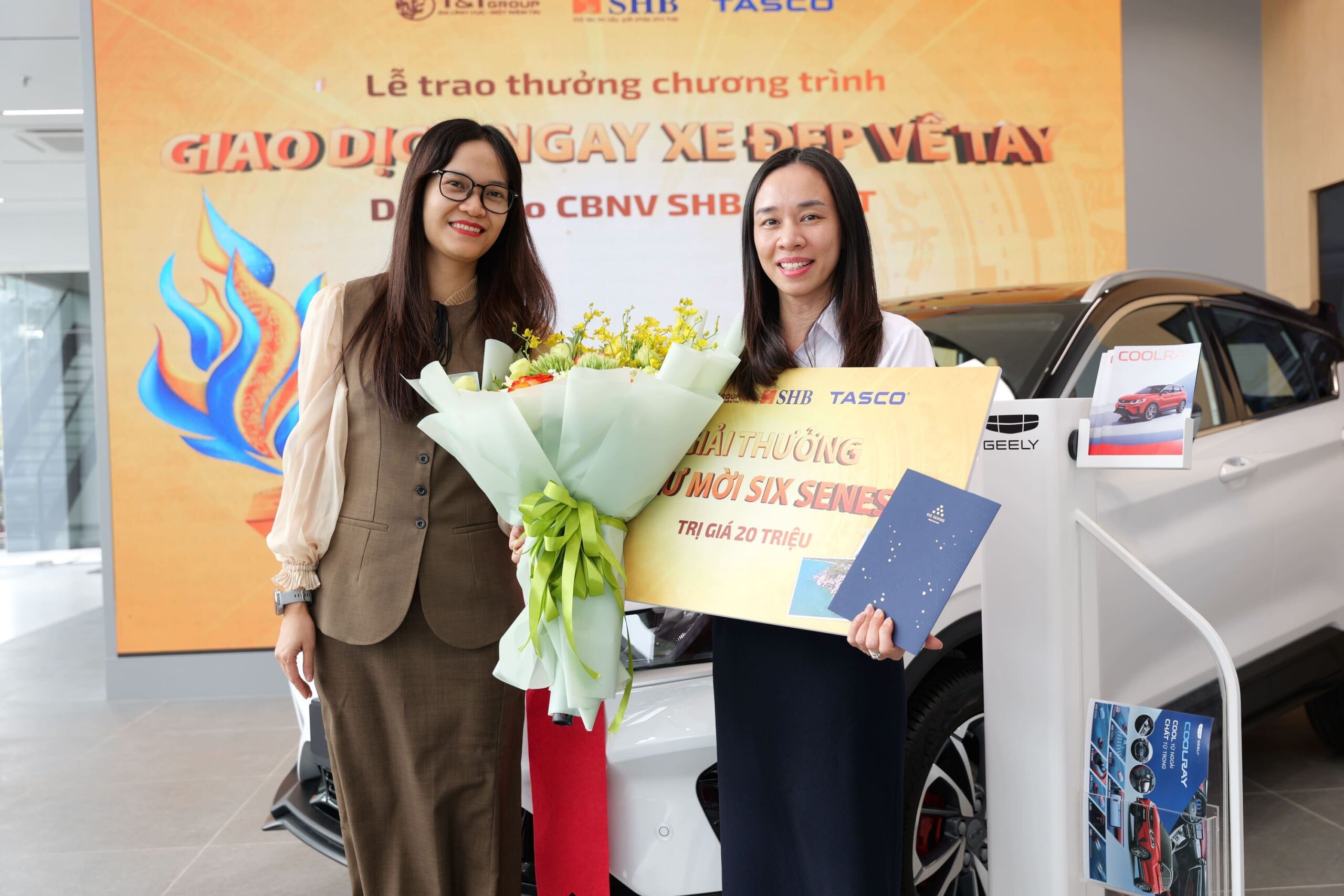 Lễ trao giải có sự tham dự của Bà Đoàn Thái Thanh Thủy – Phó Giám đốc Khối Ngân hàng Bán lẻ SHB và Ông Vũ Anh Tuấn – Phó Tổng Giám đốc Geely Bình Thuận, cùng hàng nghìn cán bộ nhân viên chứng kiến khoảnh khắc vinh danh đầy tự hào. Khi những cái tên được xướng lên, cả khán đài vỡ òa trong những tràng pháo tay chúc mừng. Cảm xúc hồi hộp nhanh chóng nhường chỗ cho niềm hân hoan khi những chiếc chìa khóa Geely Coolray được trao tận tay chủ nhân mới, đánh dấu cột mốc đáng nhớ trong sự kiện.
