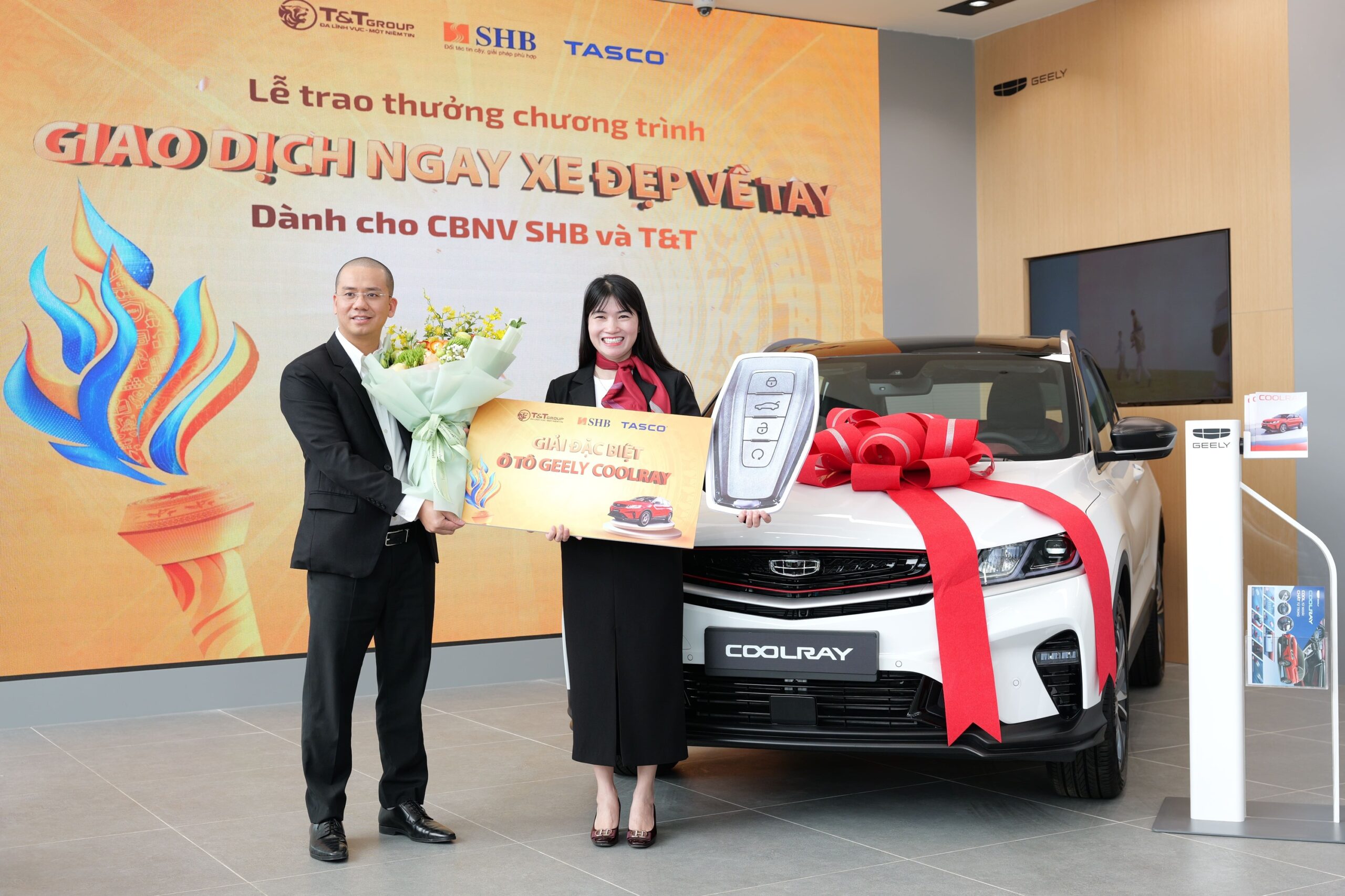 Lễ trao giải diễn ra trong không khí phấn khởi khi ba cán bộ nhân viên may mắn nhất chính thức được xướng tên và trở thành chủ nhân của Geely Coolray phiên bản Flagship – phần thưởng giá trị nhất của chương trình năm nay. Đây không chỉ là sự ghi nhận những đóng góp của cán bộ nhân viên mà còn đánh dấu sự hợp tác chiến lược giữa Geely Bình Thuận và SHB & T&T Group, khẳng định cam kết mang đến những sản phẩm chất lượng, hiện đại và tiên tiến đến với thị trường Việt Nam.